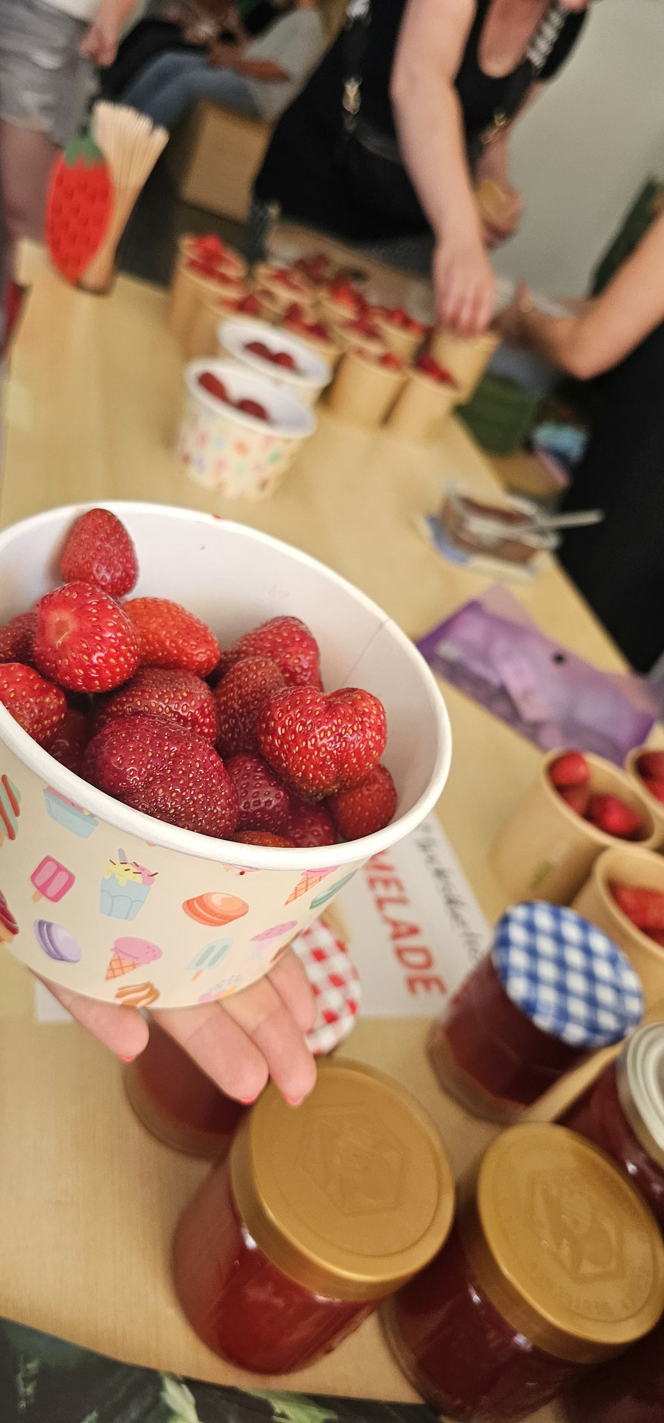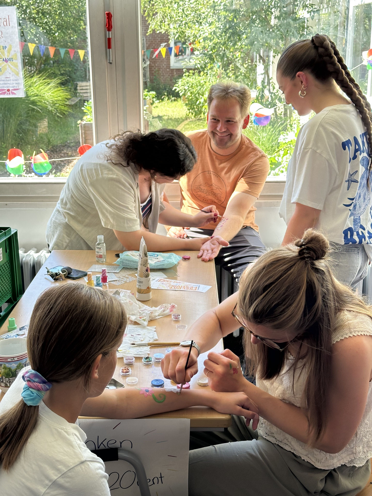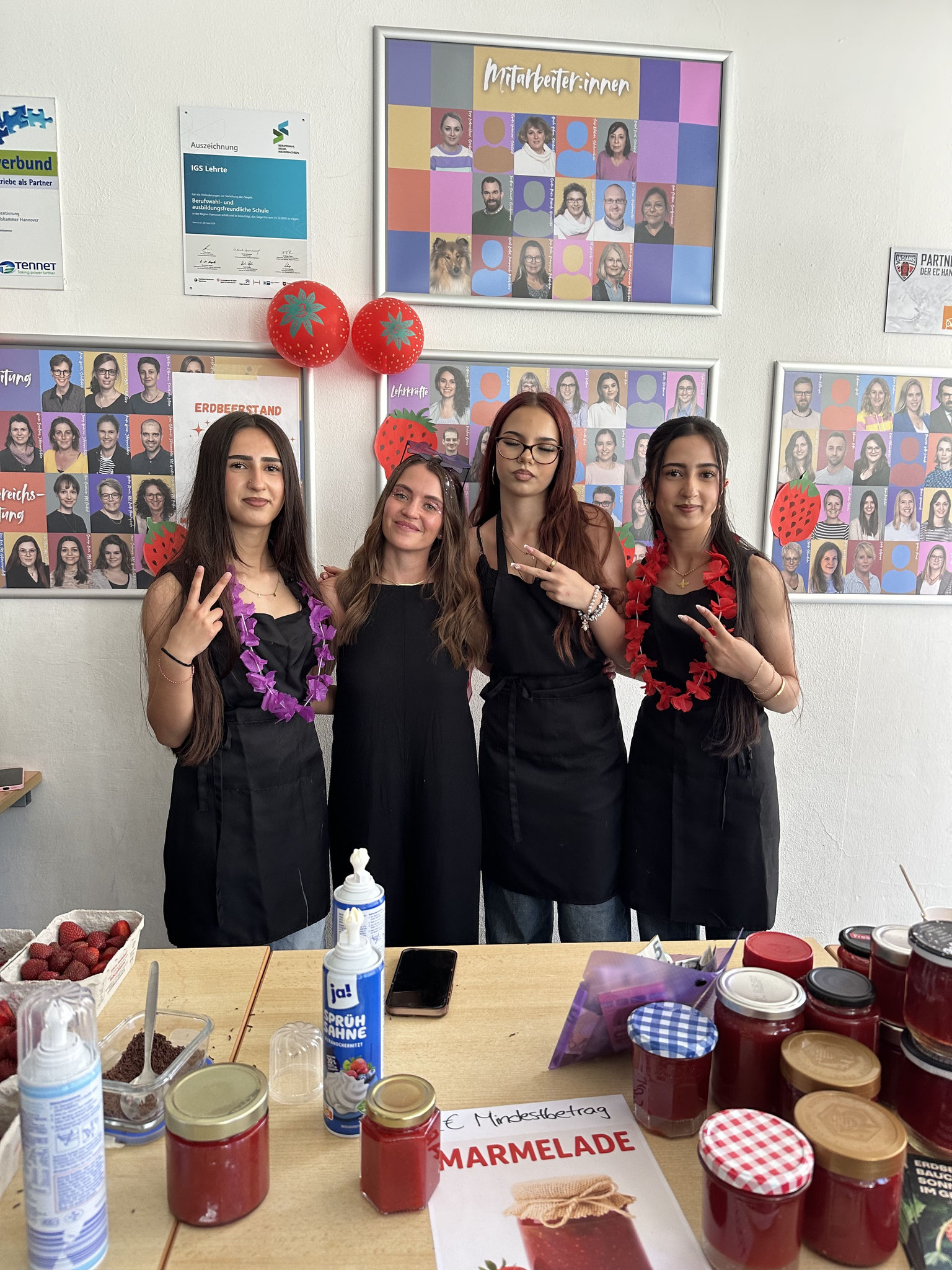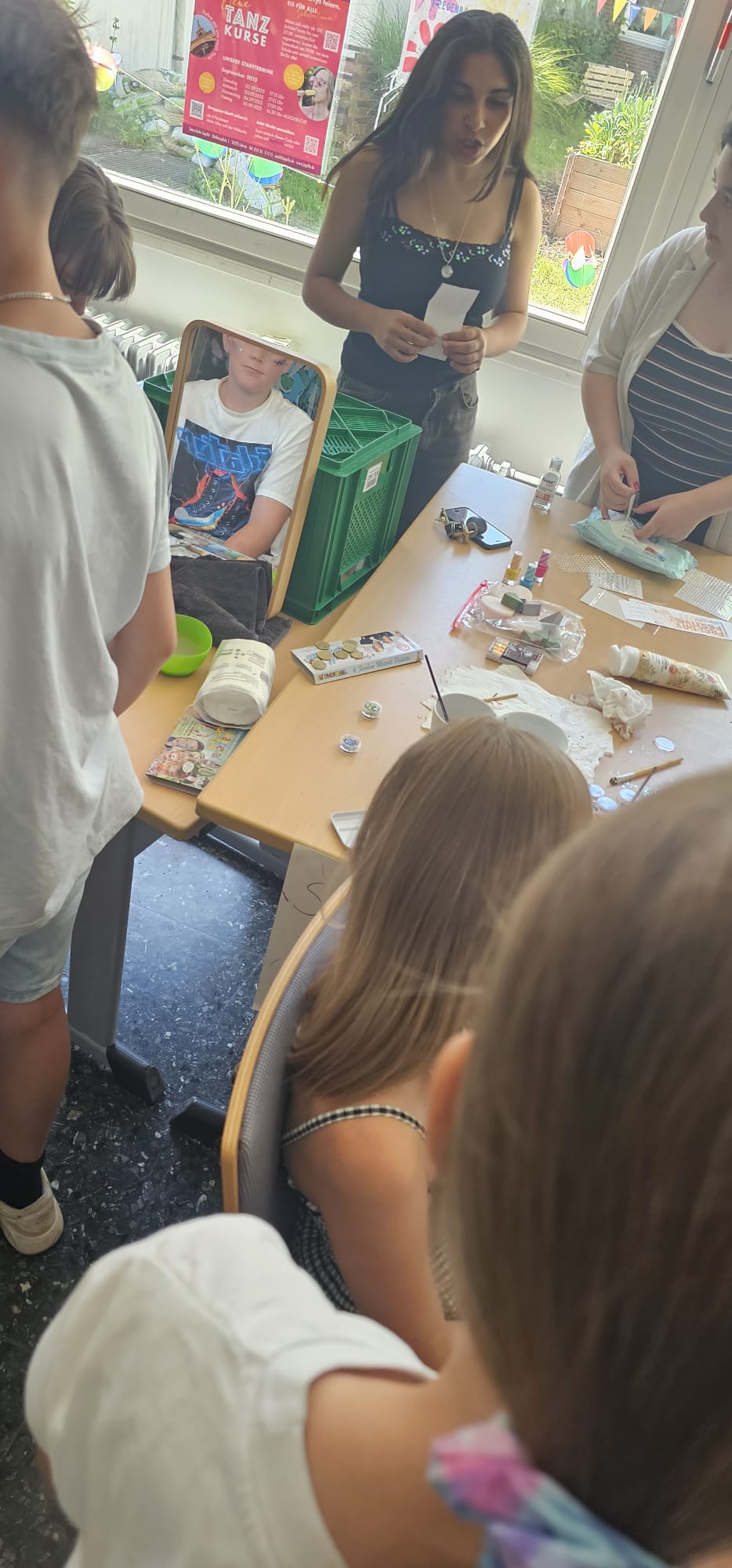 Einige Schüler*innen des 8. und 9. Jahrgangs präsentierten ihre FreiDay-Projekte zu den Themen der Nachhaltigkeitsziele und hatten dafür ein abwechslungsreiches Programm vorbereitet. Es gab Mitmachstationen, Spiele, kreative Aktionen, Infostände, und wer Lust hatte, konnte sich schminken auch schminken lassen. Besonders beliebt waren die frisch gepflückten Erdbeeren vom Erdbeerhof und das Wassereis, welches im Forum verkauft wurden.